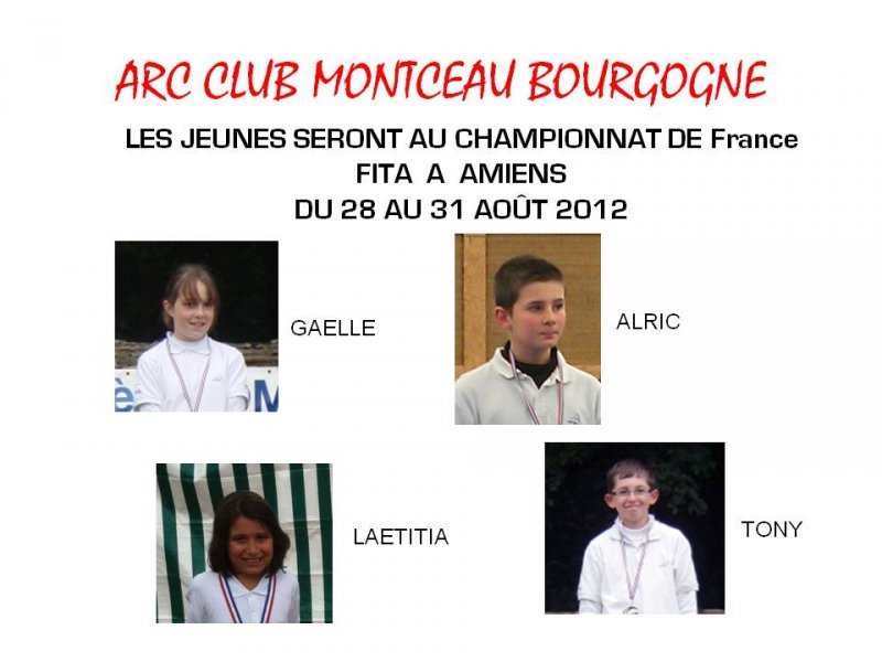 L'EQUIPE JEUNES DU CLUB SERA A AMIENS DU 28 AU 31 AOUT POUR DISPUTER LE CHAMPIONNAT DE FRANCE FITA 2012.