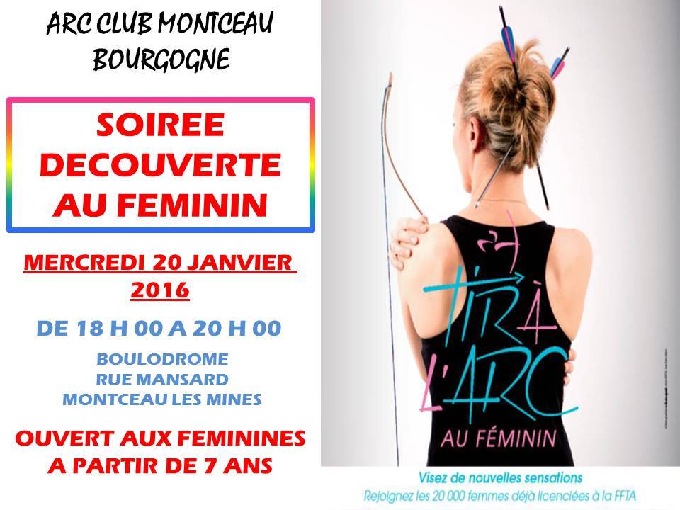 Voir l'article du JSL du 18 janvier 2016: http://www.lejsl.com/edition-montceau/2016/01/18/une-soiree-rien-que-pour-les-femmes-au-club-de-tir-a-l-arc